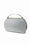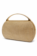 Elegant clutch featuring a fixed handle and secure lock closure.
